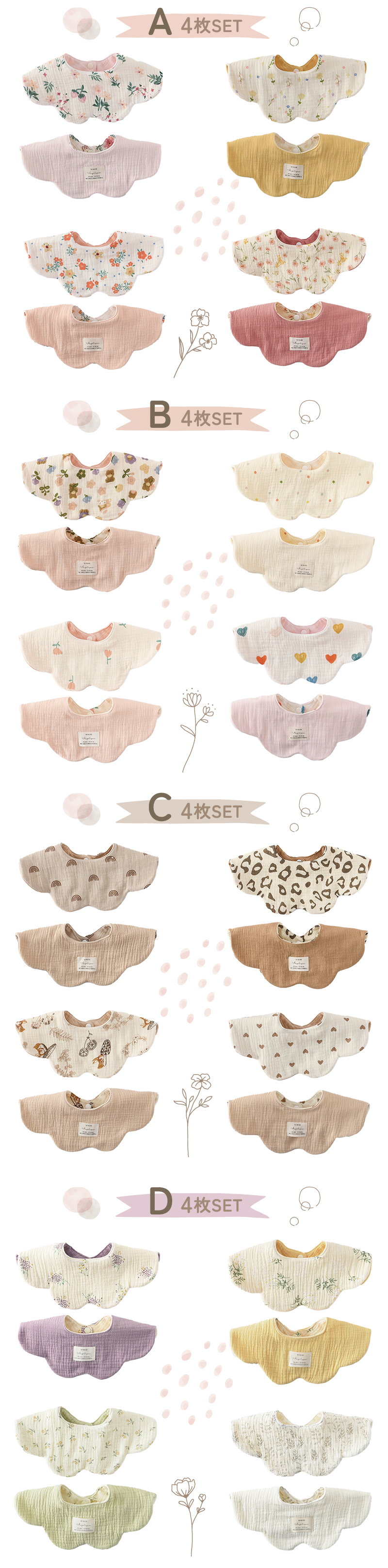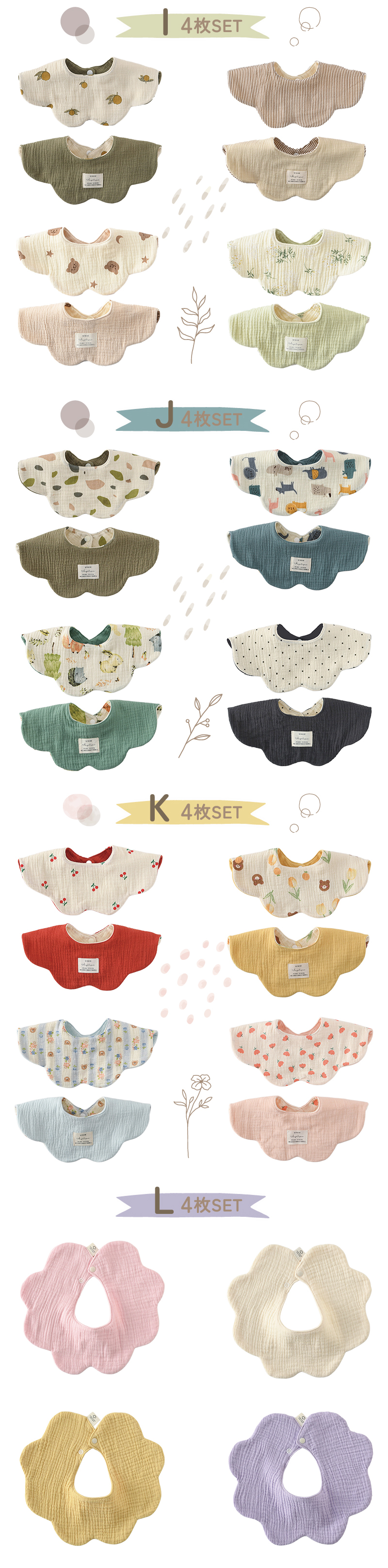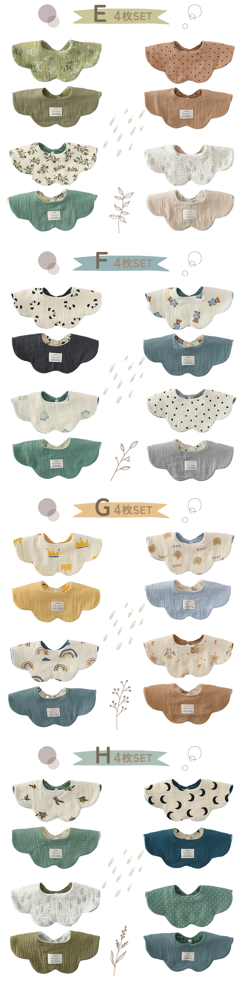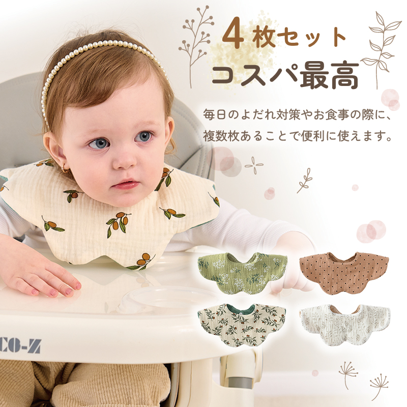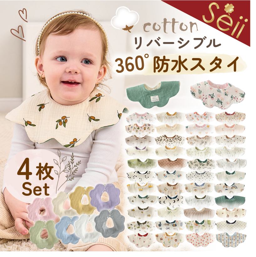 4枚セット スタイ ベビー 綿100% 防水 リバーシブル 360° よだれかけ 赤ちゃん 男女兼用 保育園 出産祝い
