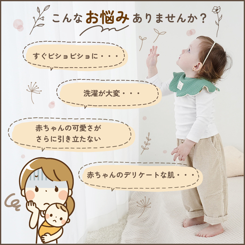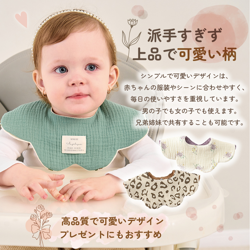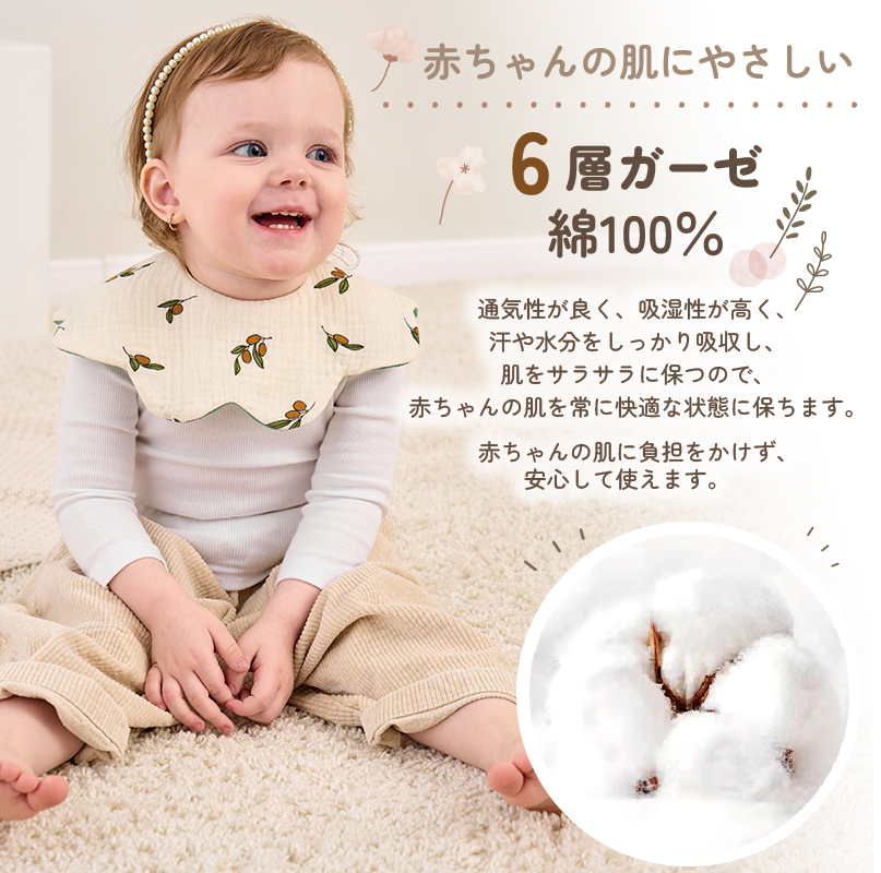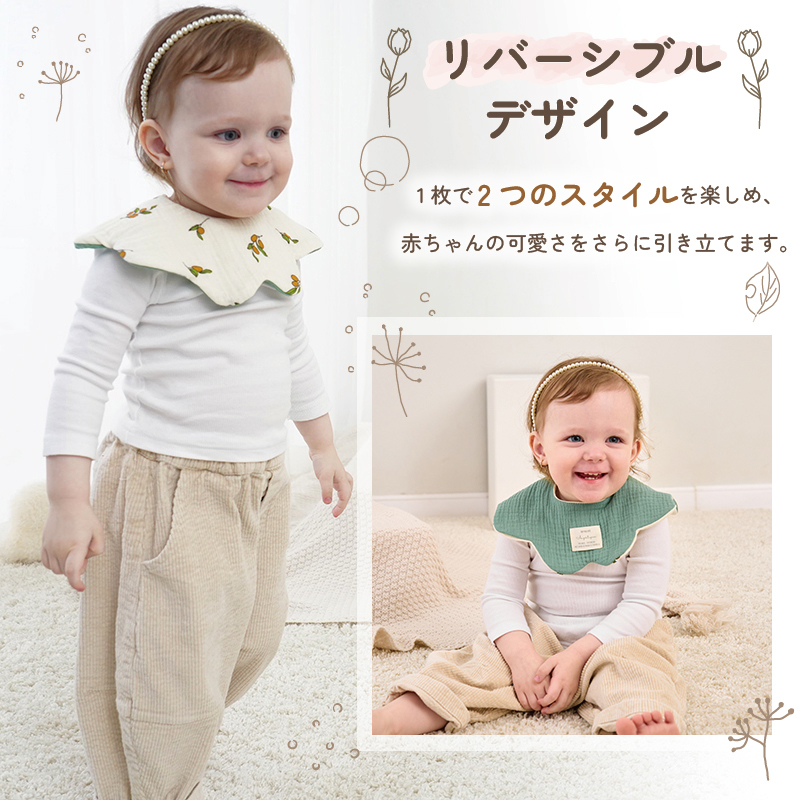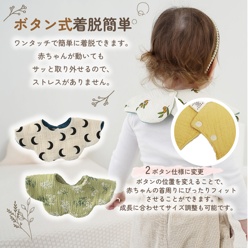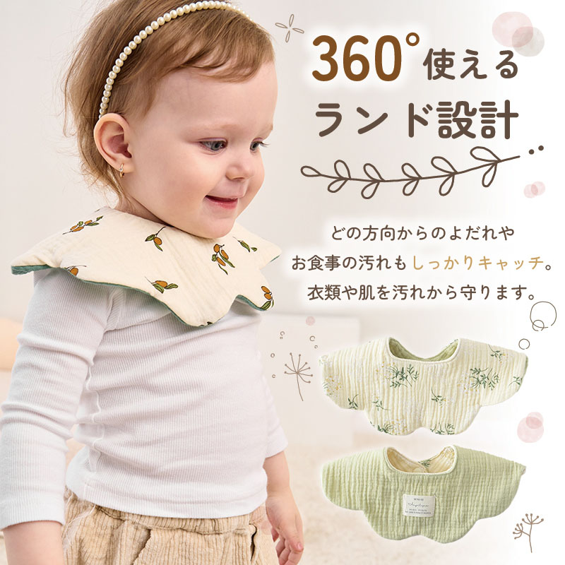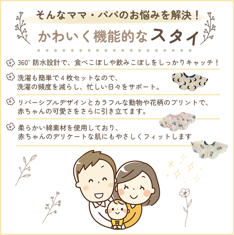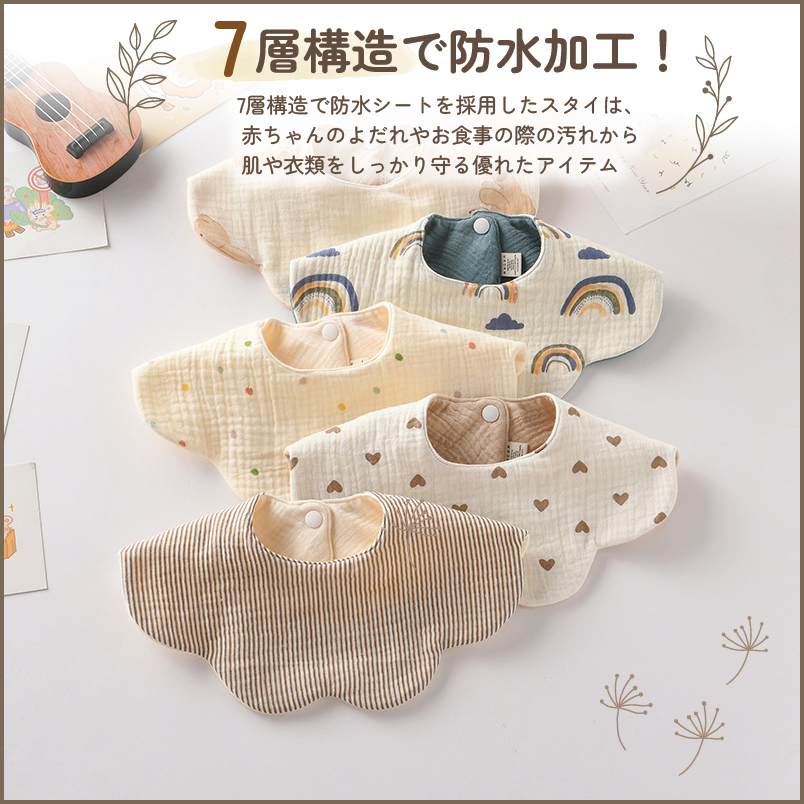 4枚セット スタイ ベビー 綿100% 防水 リバーシブル 360° よだれかけ 赤ちゃん 男女兼用 保育園 出産祝い