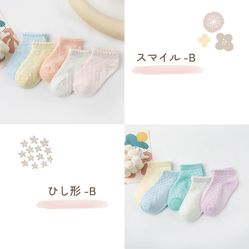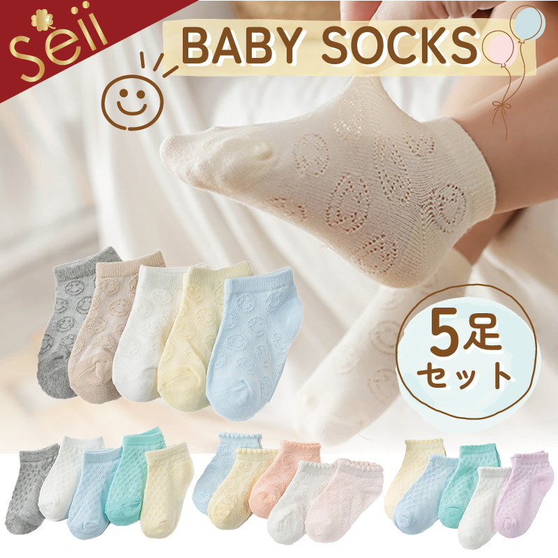 靴下 ベビー 新生児 ベビーソックス 5枚セット ソックス メッシュ キッズ 子供靴下 5足組 赤ちゃん靴下 男の子 女の子 コットン 綿 幼児 柔らかい かわいい