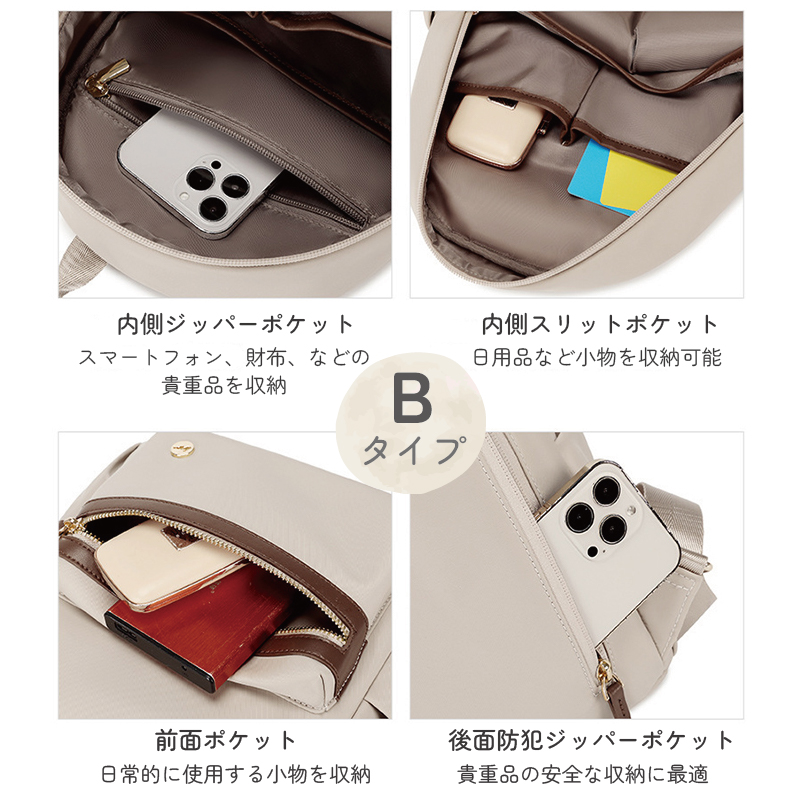 小さめのサイズ感で、持ち運びが便利。ミニサイズながら、スマートフォン、ウォレット、ポーチ、折り畳み傘など、