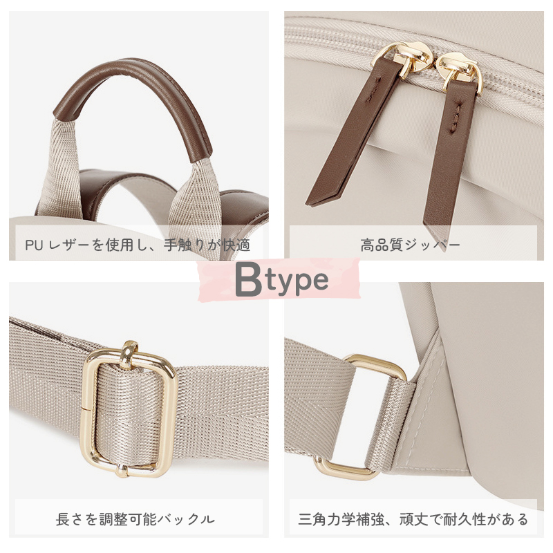 シンプルで使いやすいカラーバリエーションを展開。撥水加工を施しているため、突然の雨やちょっとした水濡れにも安心です。