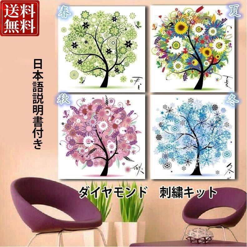 ダイヤモンドアート 春 夏 秋 冬 四季 図柄印刷 樹 木 花 植物 刺繍キット DIY 初心者向け やり方簡単 ビーズ刺繍手芸 居間 寝室 ステッチ 送料無料 三四郎市場