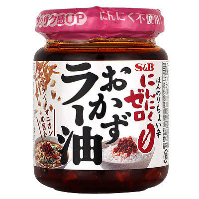 ラー油・フライドオニオン・ローストアーモンド・辣醤の組み合わせによる絶妙な美味しさにしました。にんにく不使用。