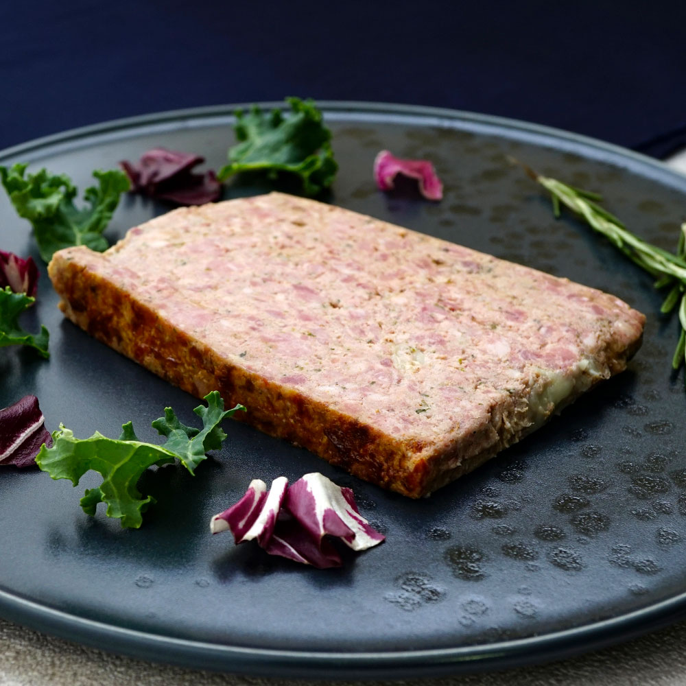 国産豚肉に国産豚レバーと粗挽き肉を混ぜて焼き上げました。ハーブやスパイスの香りと肉の旨味を味わうことができます。