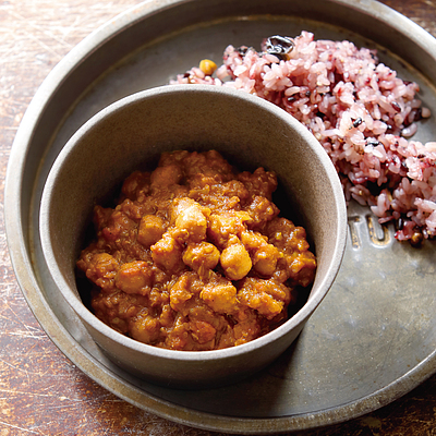 主原料に動物性由来の原料を使用せず、9種類のスパイスを加えた辛味のある味わい深いカレー。