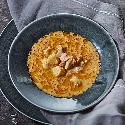 ココナッツミルクのほのかな甘みに、後からくる青唐辛子の辛さが癖になる味わい。鶏肉、ヤングコーンと具材がたっぷりと入ったグリーンカレー。