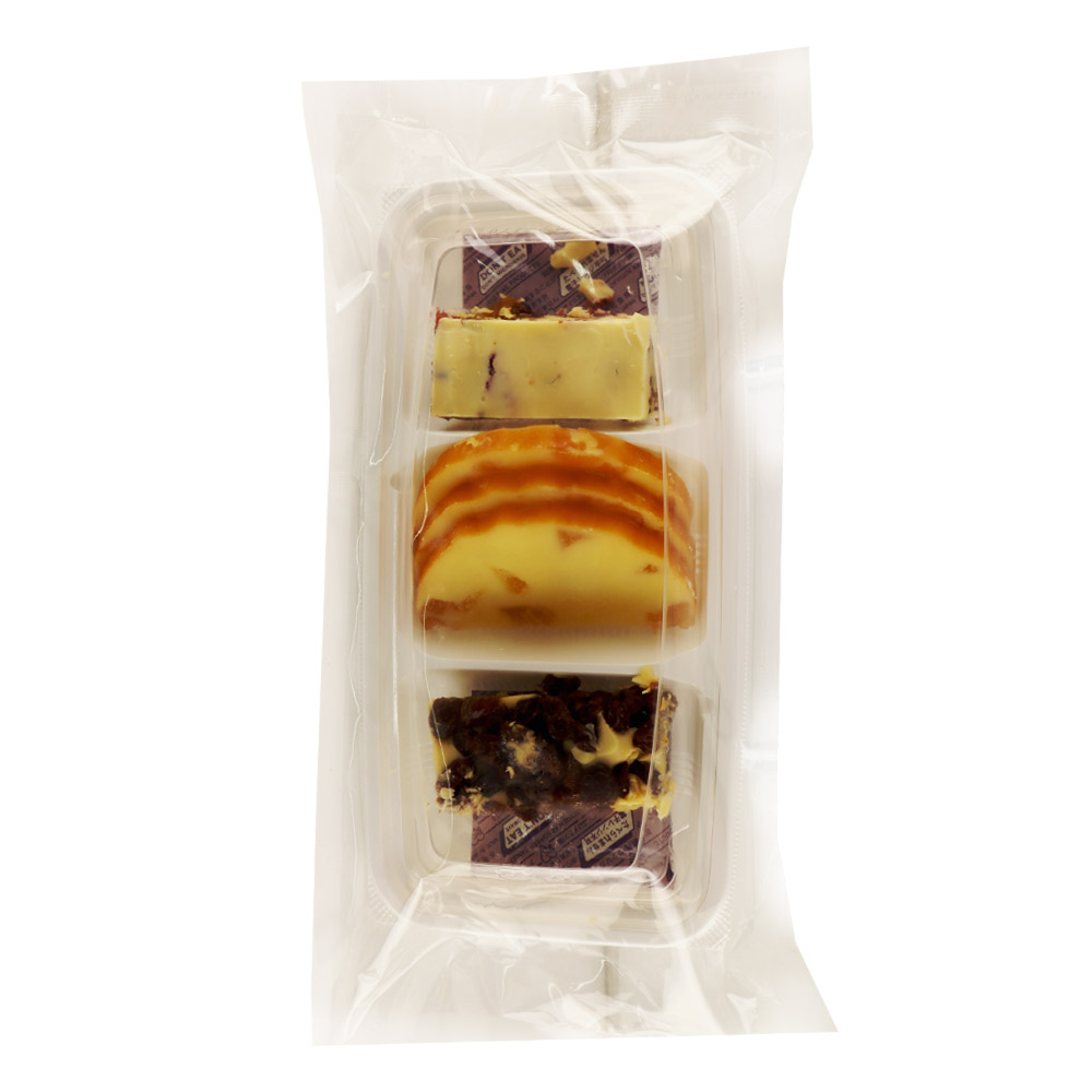 かずのこチーズ、4種ドライフルーツのクリームチーズ、ラムレーズンがたっぷり入ったクリームチーズの3種類を詰め合わせました