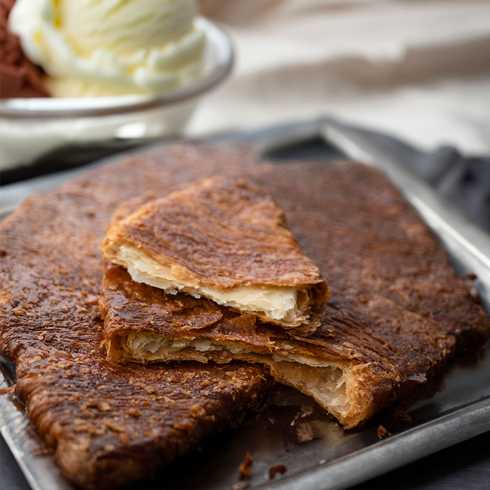 サクサクとした食感と香ばしいバターの香りが楽しめます。アイスやナッツをトッピングするのもおすすめです。