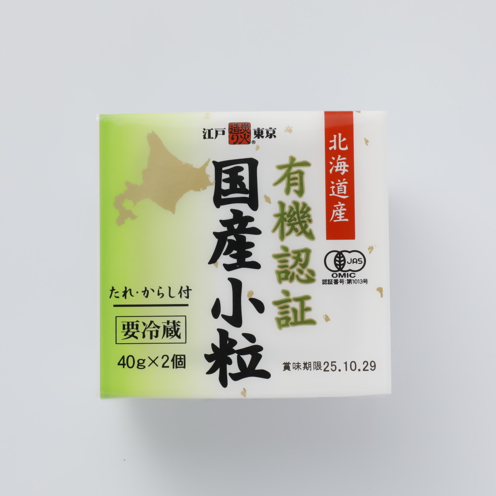 北海道産有機小粒大豆を100%使用。添付のたれ、からしには保存料・化学調味料・着色料は使用しておりません。