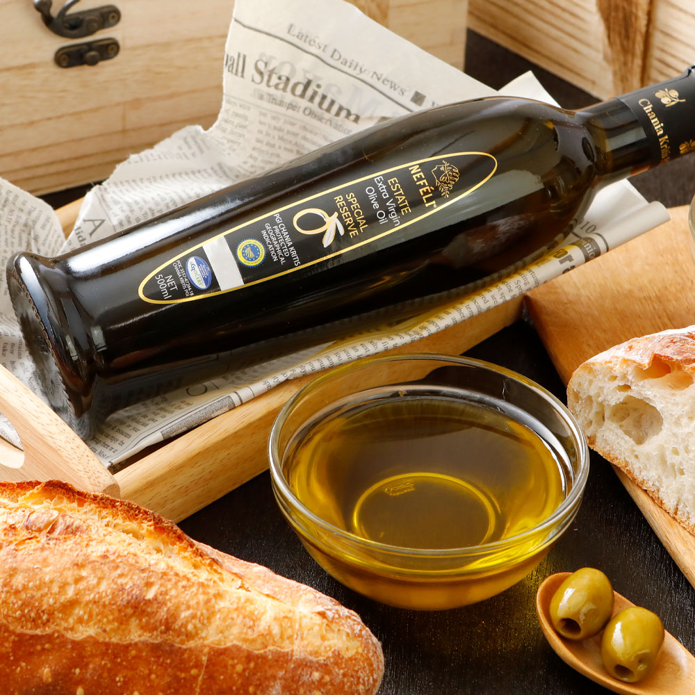 クレタ島西部で収穫されたコロネイキ種の単一品種から作られたオリーブオイル。マイルドな風味。様々な料理にどうぞ。