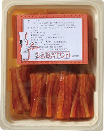 スティック状にカットしたスペイン産ネーブル種のオレンジの皮をじっくりと煮上げた非常に香り豊かな製品。