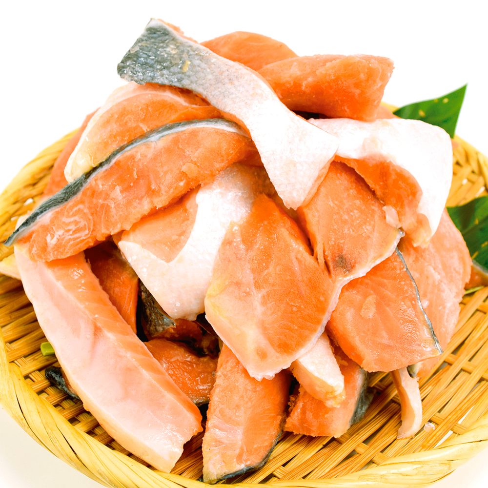 脂乗り良いサーモントラウトを、大きさ不揃いの切落しで。無塩なので、煮物やフライ・石狩鍋にも大活躍。