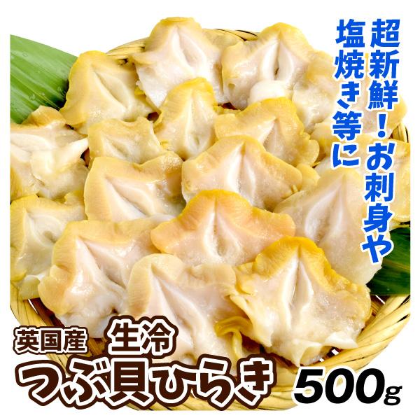 つぶ貝 500g 生冷つぶ貝ひらき 刺身用 英国産 貝 生つぶ貝 ひらき 生食 送料無料 冷凍便
