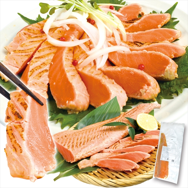 ●商品情報:脂ののったサーモントラウトを香ばしく炙りでご用意!骨取り済み&生食用のロイン(3枚におろしたフィレを背と腹で半分に分割したもの)を使用しているので、解凍後はそのままお召し上がり頂けます。とろける旨さ!お刺身やサラダで♪