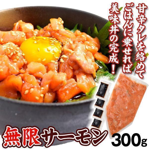 無限サーモン 300g 業務用 タレ付き ダイスカット サーモン丼 食品 冷凍便