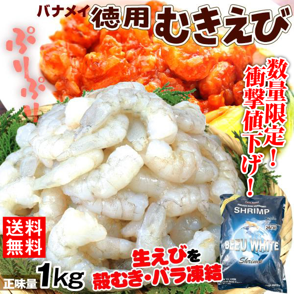 むきえび 徳用 バナメイむき海老 1kg 生冷 バラ凍結 送料無料 冷凍便 食品