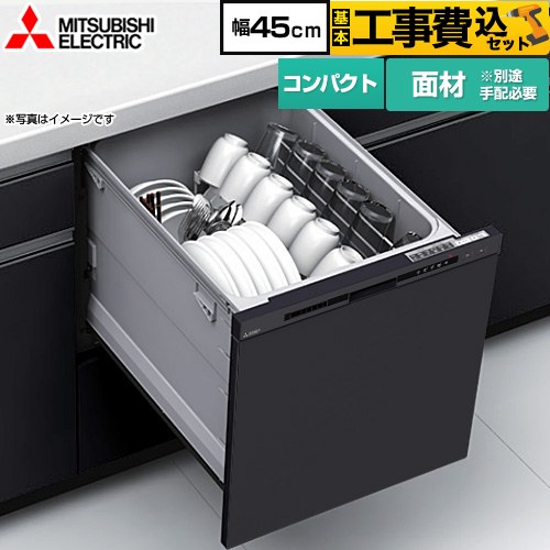 工事費込みセット EW-45R3シリーズ 食器洗い乾燥機 コンパクトタイプ 浅型 三菱 EW-45R3BM ドア面材型 ブラック 爆買