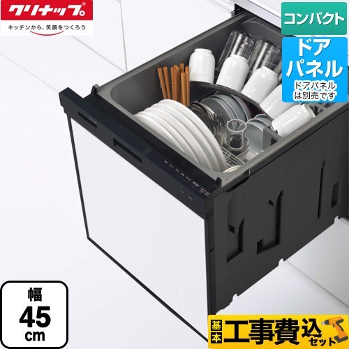 工事費込みセット プルオープン食器洗い乾燥機 食器洗い乾燥機 コンパクトタイプ クリナップ ZWPP45R21ADK-E パネルタイプ ブラック 爆買