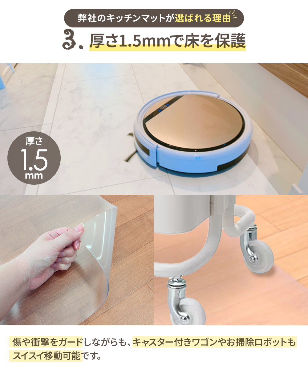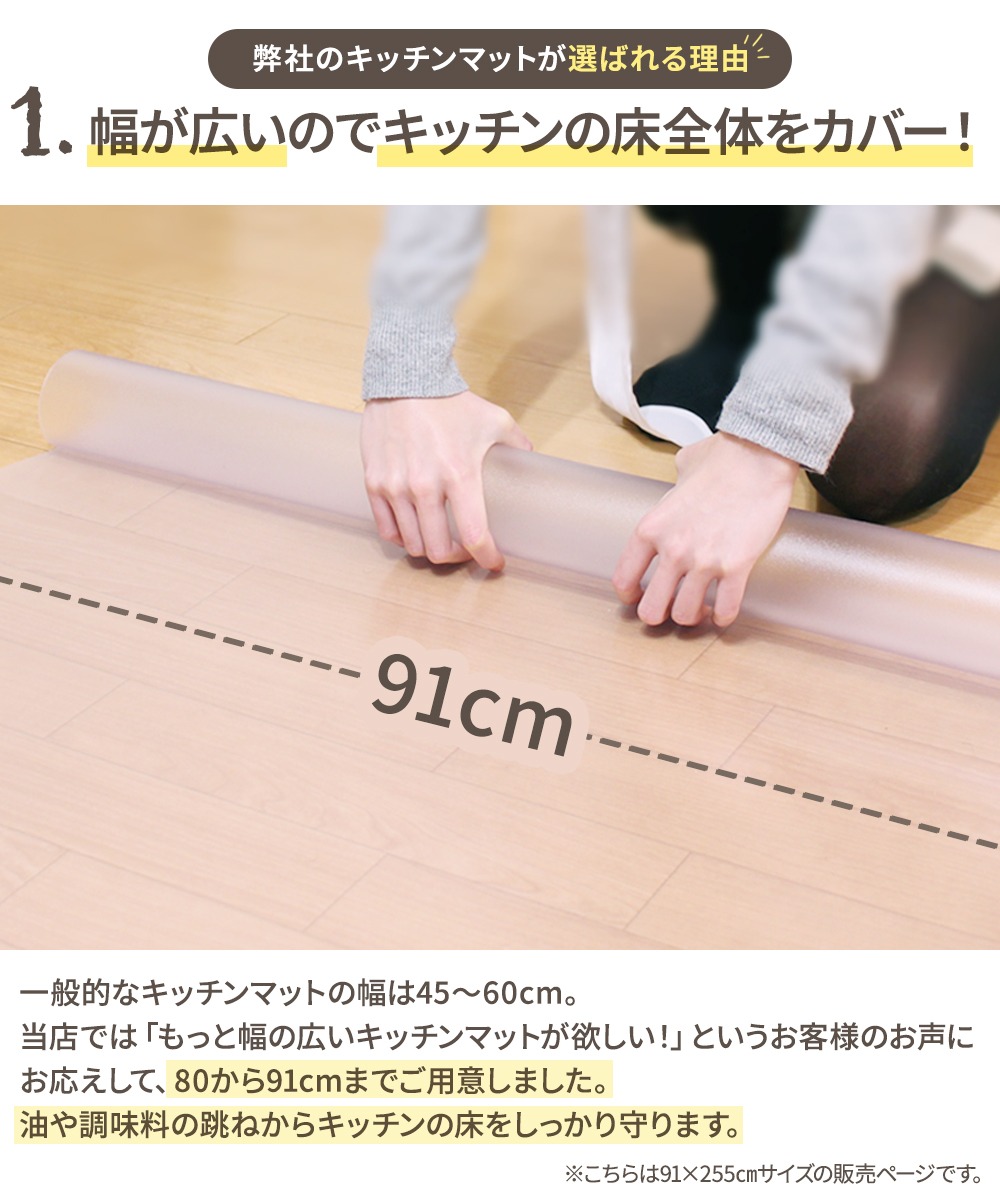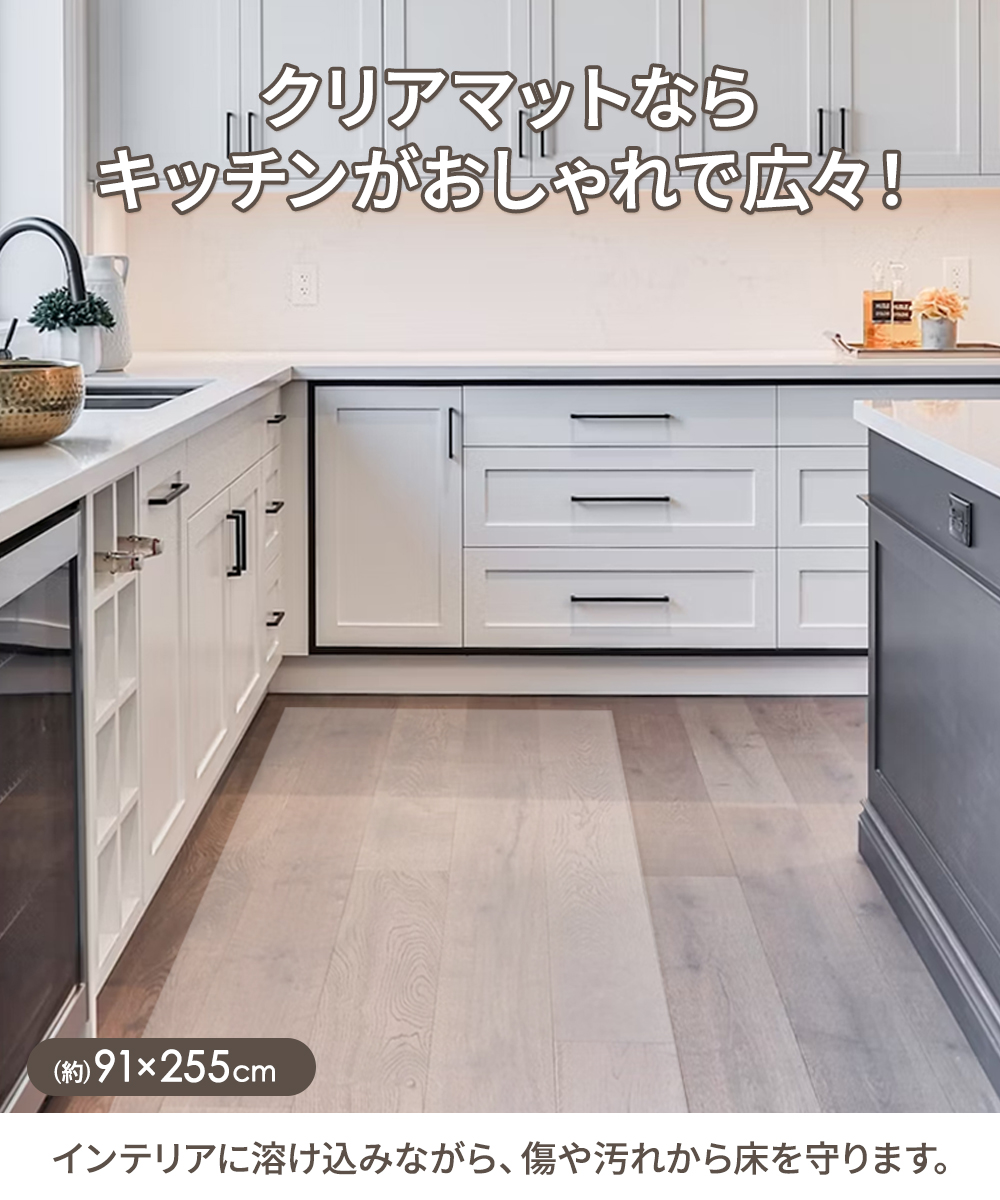 キッチンマット 拭ける 透明 91×255cm 日本製 | キッチン 透明マット クリア マット 255 おしゃれ 床暖 房 対応 クリアマット ロング PVC 床暖房対応 新生活