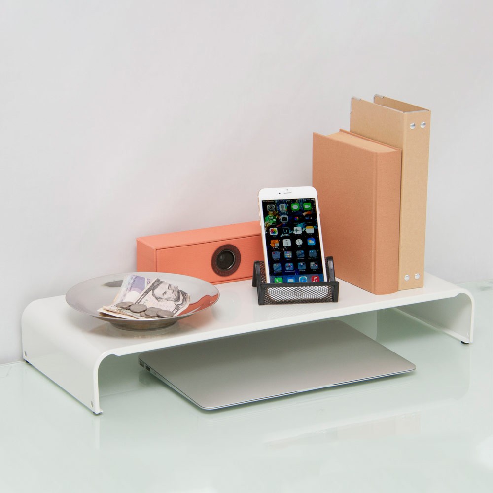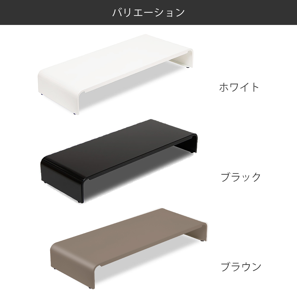 | モニターラックとしてだけではなく、モニター前のラックとして使ったり、サイドラックとして使ったり、アイデア次第で使用シーンは広がります。 | ブラックとホワイトの2カラーのスチール表面には、パールマイカ塗装を施しております。天然パールと同じ多重反射で柔らかいキラキラ感があり、鮮やかな光沢を放ちます。 | |