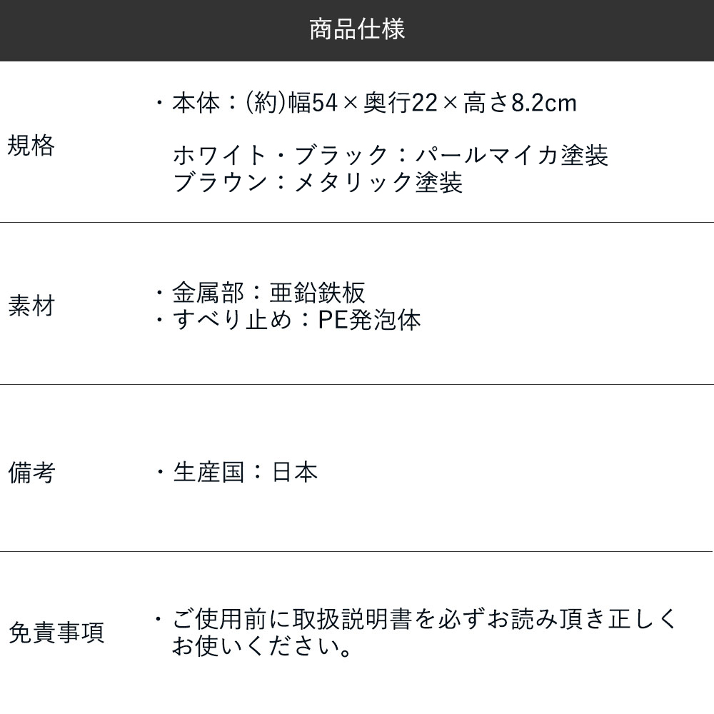 | ブラウンは鮮やかな光沢を放つメタリック塗装で、2重焼き付け塗装なので錆にも強いです。 | 底面にはクッションがついているため、傷がつきにくい作りになっています。 | |