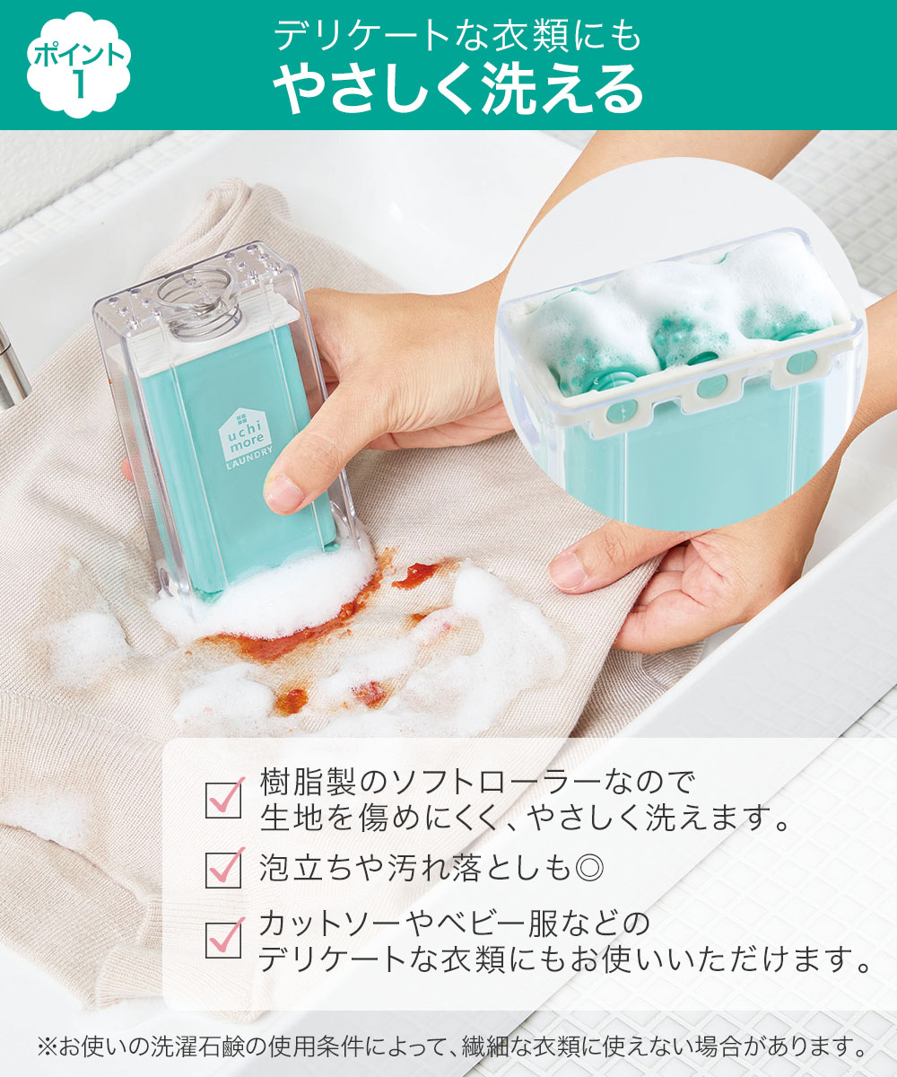 【商品について】石鹸ケースのままコロコロ動かすだけ!先端に柔らかい樹脂製のローラーがついてるので、生地を痛めにくくしっかり汚れ落としができます。■規格サイズ:(約)幅8×奥行4.5×高さ4.2cm個装重量:(約)152g■生産国中国■ご使用にあたっての注意事項・ご使用上の注意を必ずお読みいただき、正しくお使いください。・閲覧環境によっては色の出方が異なる場合がございます。