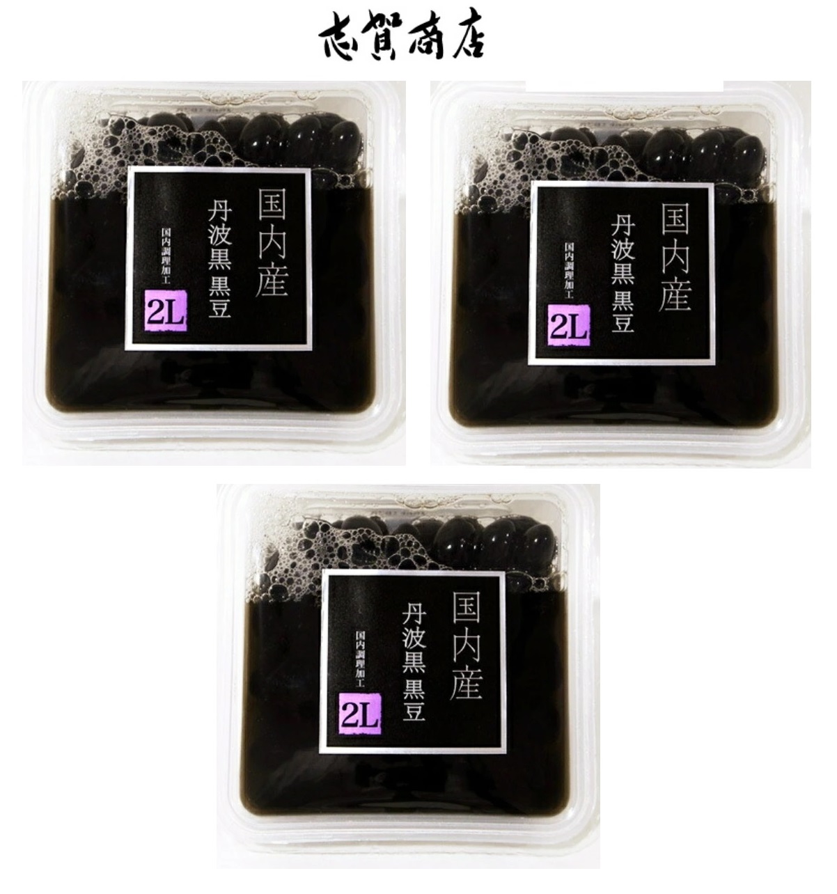 国内産丹波黒2Lを使用した、黒豆煮豆。昔ながらの製法で、人気の絶えない商品です。あっさりとした醤油無しの味付けです。年末商材として、ご利用いただけます。大粒で高級感もあり、ご満足のいただける一品です。