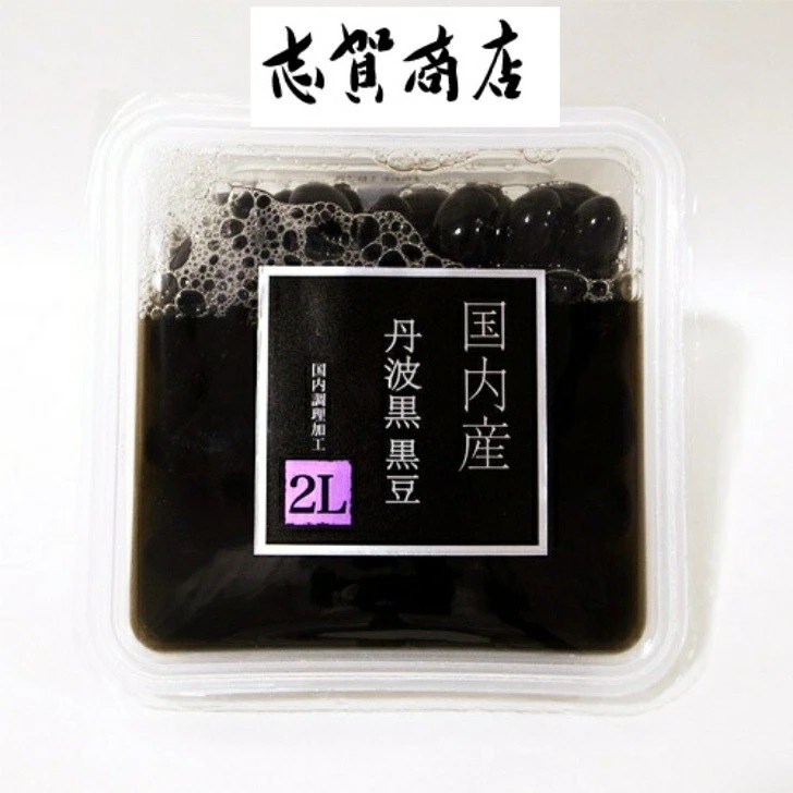 国内産丹波黒2Lを使用した、黒豆煮豆。昔ながらの製法で、人気の絶えない商品です。あっさりとした醤油無しの味付けです。年末商材として、ご利用いただけます。大粒で高級感もあり、ご満足のいただける一品です。