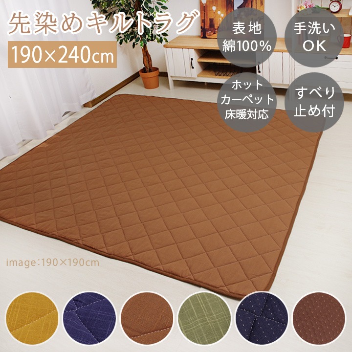 | 商品説明 | ●先染めキルトラグ ■ 大人気「先染め」シリーズ! ■ 豊富な柄、サイズで大人気の先染めシリーズのキルトラグです。 ■ 表地は綿100%の先染め生地を使用、オールシーズン使用OK。 ■ こたつ敷き布団としても使えるので、セットのこたつ掛け布団とも相性◎。 |