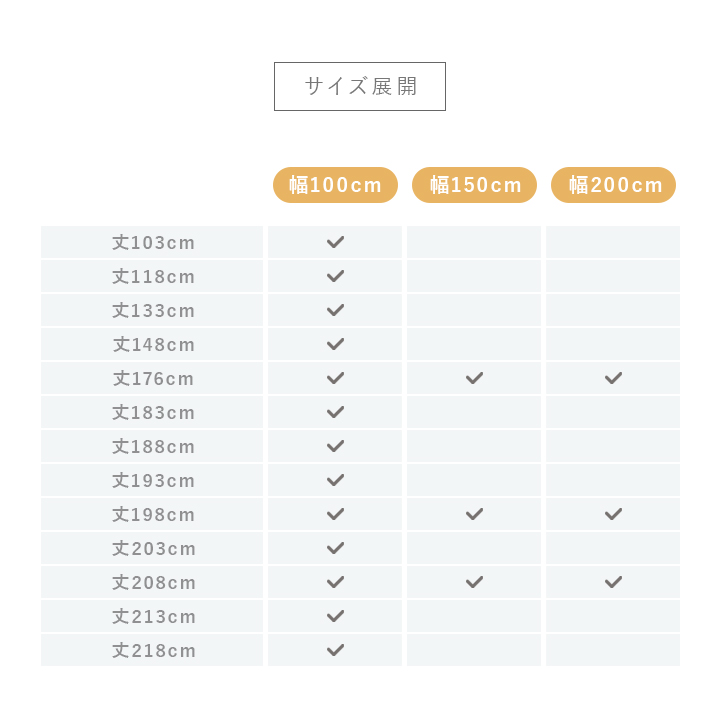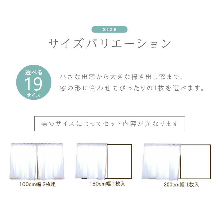 | ・本商品に形状記憶加工は施されておりません。 ・タッセルは付属しておりません。 ・150cm幅、200cm幅は生地幅の都合上、必ずつなぎ目がございます(巾継ぎあり)。 ・150cm幅、200cm幅は1枚売りです。両開きでご使用のお客様は2セット購入をお願いいたします。 | |