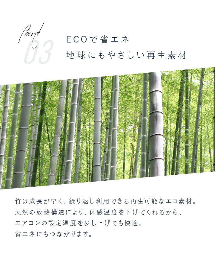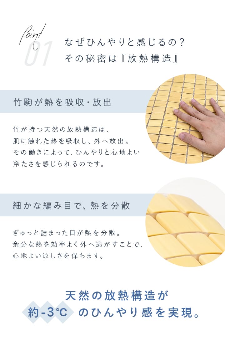 ・竹の中で最もヒンヤリ感があるといわれている孟宗竹の密度の詰まった表面のみを使用。