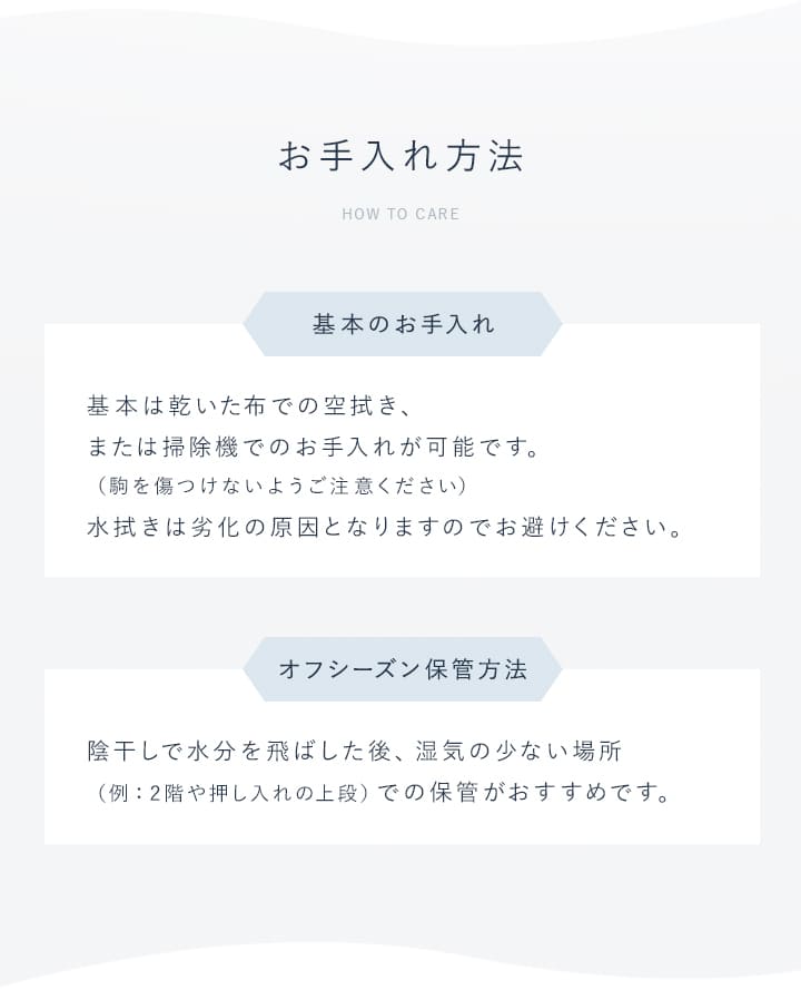 # 本商品は自然素材につき、通気性が悪いとカビの発生につながります。梱包について、