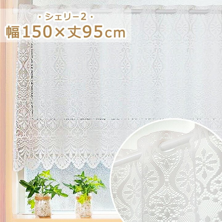 カフェカーテン シェリー2 幅150×丈95cm おしゃれ レース 目隠し インテリア 出窓 150 95 かわいい 出窓用 日本製 爆買