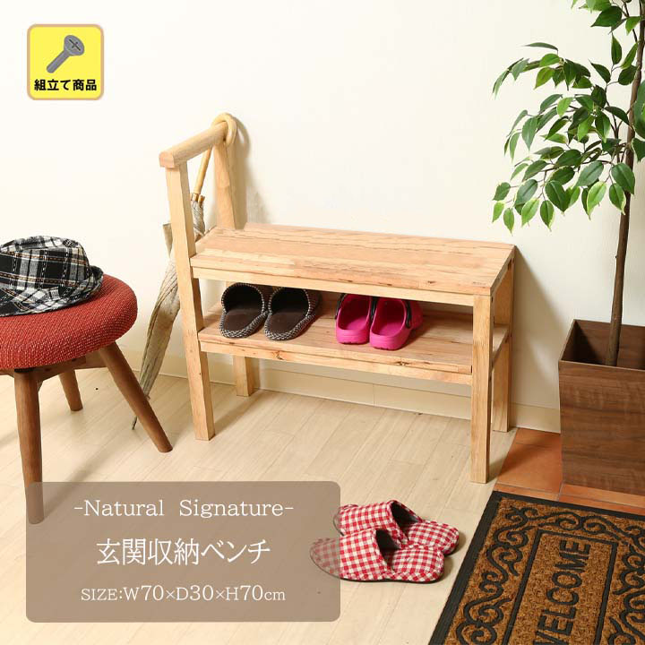 玄関収納ベンチ Natural Signature(fbc) 天然木 おしゃれ かわいい 木製 玄関 椅子 腰かけ 手すり 爆買