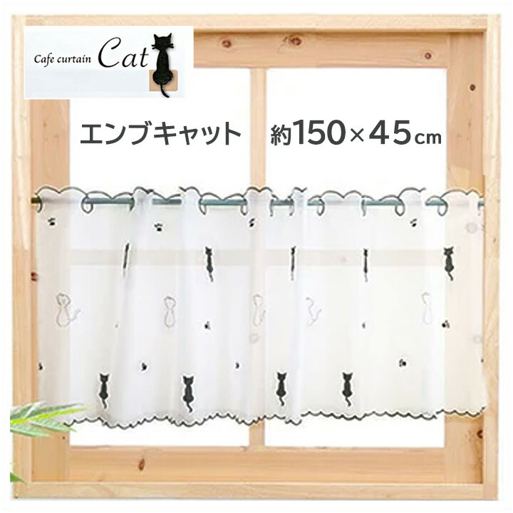 カフェカーテン 「 エンブキャット 」 幅150×丈45cm 小窓用 目隠し おしゃれ かわいい 黒猫 150×45 爆買