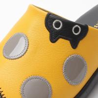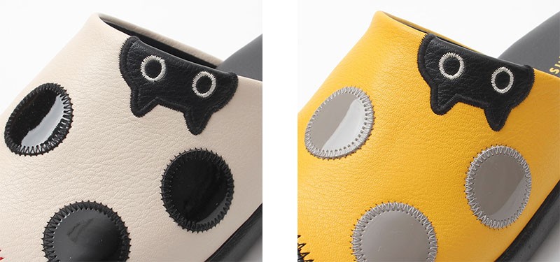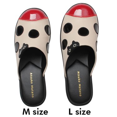 光沢のあるエナメル調のドットにかわいいMEMEのアップリケ。つま先もエナメル調のキャップトウでかわいらしいデザインです。 | ||
