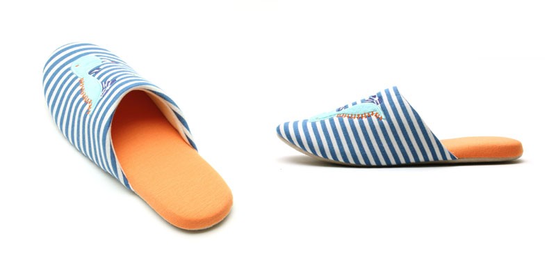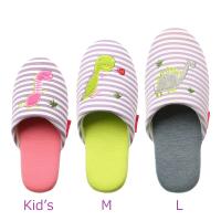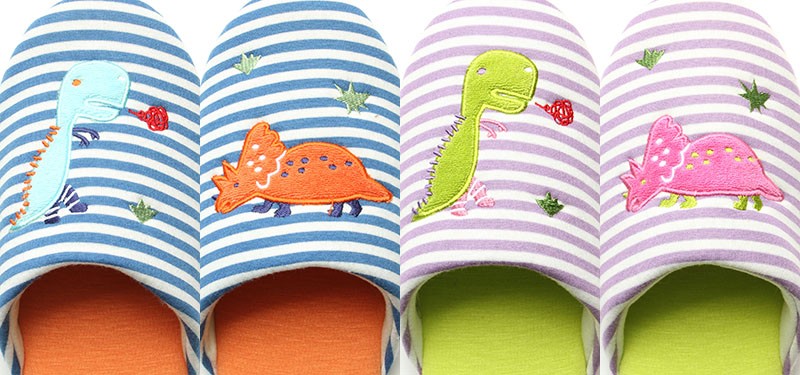 コミカルな恐竜とボーダーの組み合わせが楽しいスリッパです。 |