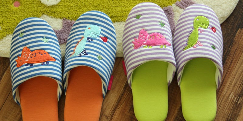 テキスタイルブランド「イッソ・エッコ」が手掛けた、カラフルで愛らしい恐竜モチーフのスリッパです。 |