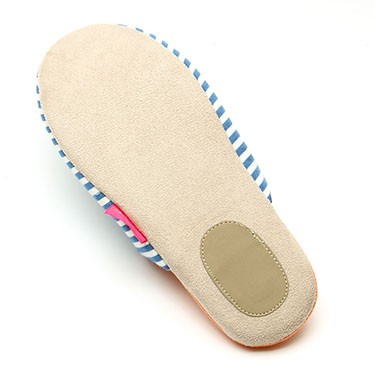底面はフローリングの床を傷めない布地の素材を使用しています。 | | ソフトタイプで底面が足に合わせて曲り、歩きやすく足音も静かです。踵部分には滑り止めも付いています。 |