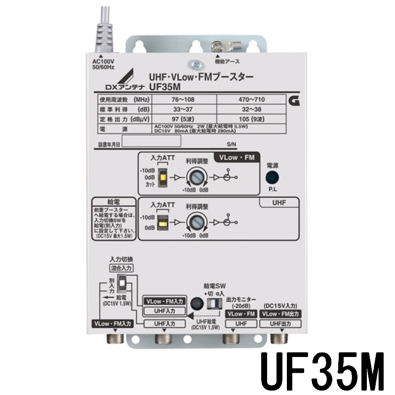 DXアンテナ 共同受信用 UHF・FMブースター 35dB型 UF35M (旧UF39S1)
