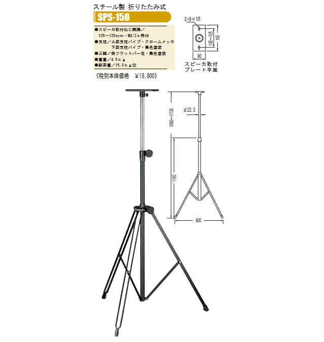 OHASHIのスピーカースタンド。スピーカー取付ねじ間隔105-135mm。高さ106-173cm。