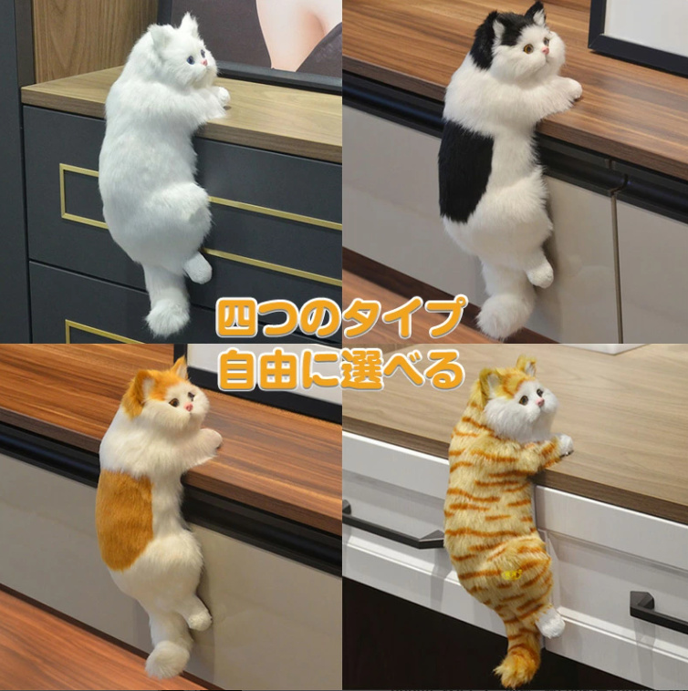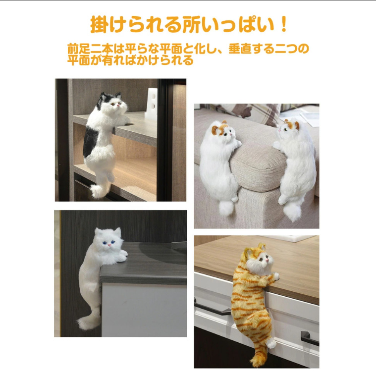 リアルな猫飾り「ぶら下がり猫」は、まるで本物の猫のような愛らしさを持つぬいぐるみです。三毛猫をはじめとする多彩なデザインで、どんなインテリアにもぴったり。棚や机にぶら下がる姿が、空間に遊び心をプラスします。子供の誕生日プレゼントや猫好きな方へのギフトとしても最適です。おしゃれな猫の置物として、日常に癒しを届けます。ペットのような存在感で、見るたびに心が和むことでしょう。