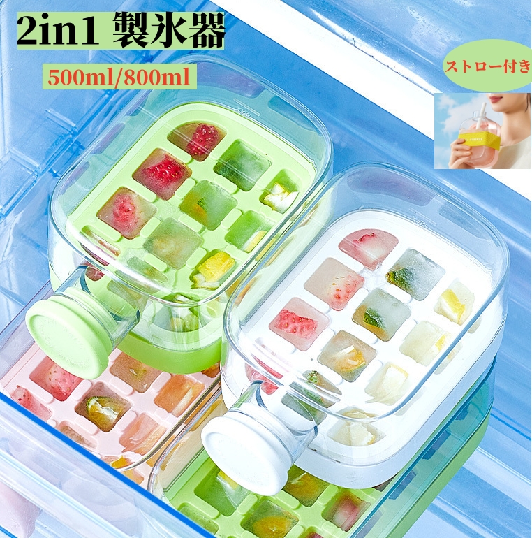 製氷器 氷型 アイス型ボトル 2in1 製氷ボトル 製氷皿 ストロー付き 直飲み アイスボール ウォーターカップ アイスキューブケトル 取出し簡単 アイスモールド