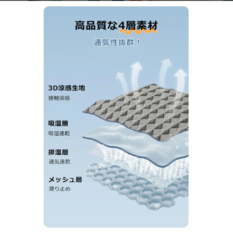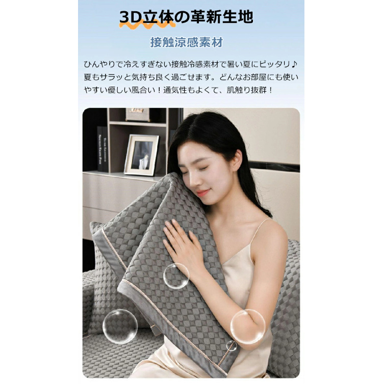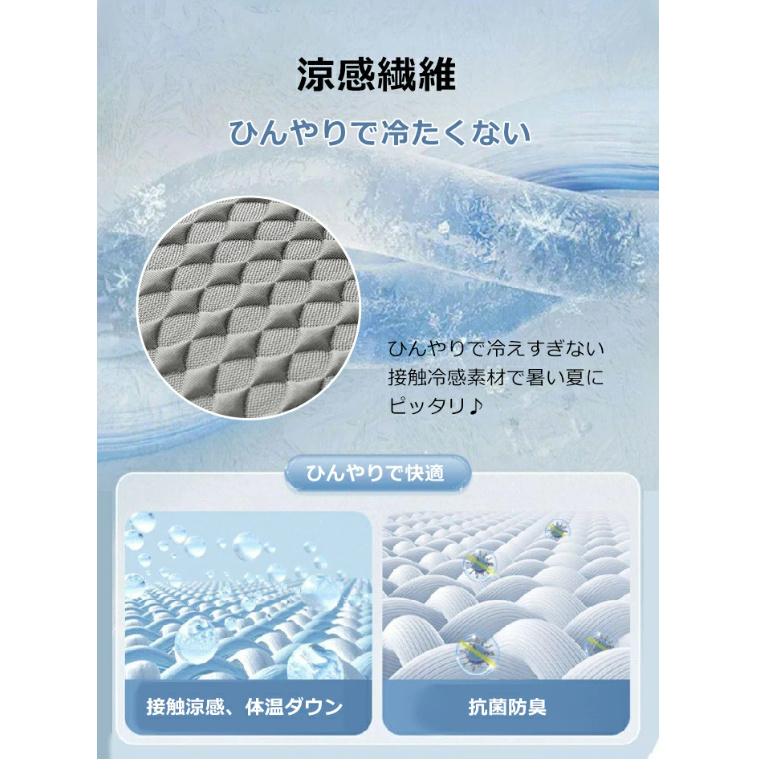 ひんやりで冷えすぎない接触冷感素材で暑い夏にピッタリ♪夏もサラッと気持ち良く過ごせます。どんなお部屋にも使いやすい優しい風合い!通気性もよくて、肌触り抜群!。