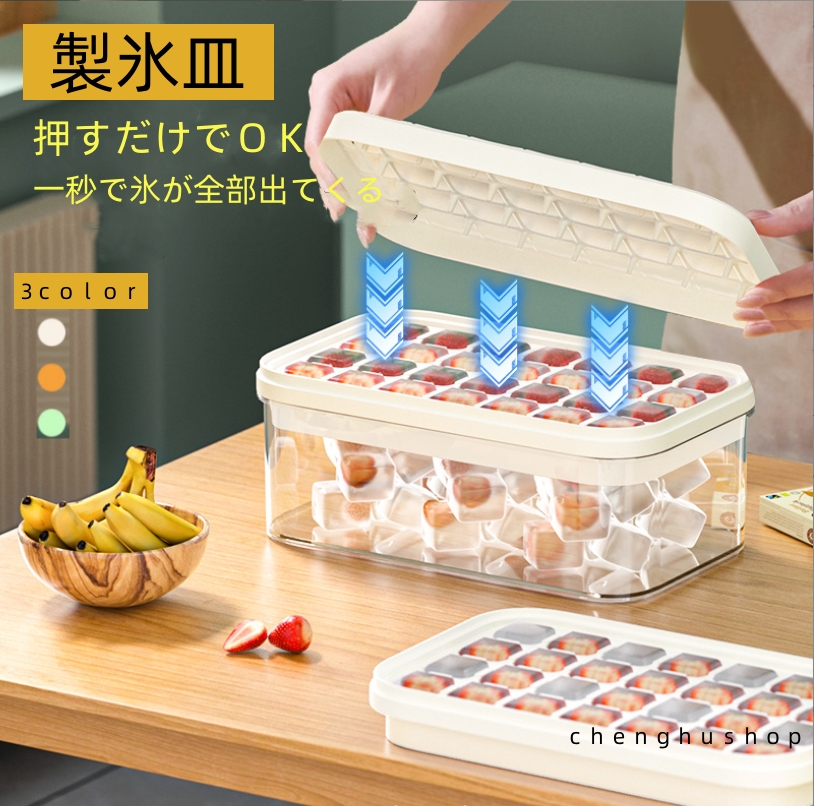 製氷皿 シリコン 製氷器 氷トレー 大容量 収納ボックス付き 保存ケース 3サイズ3色 四角氷 2.5cm 夏 蓋付き 角型 反転 ひっくり返す 押し出す アイストレー