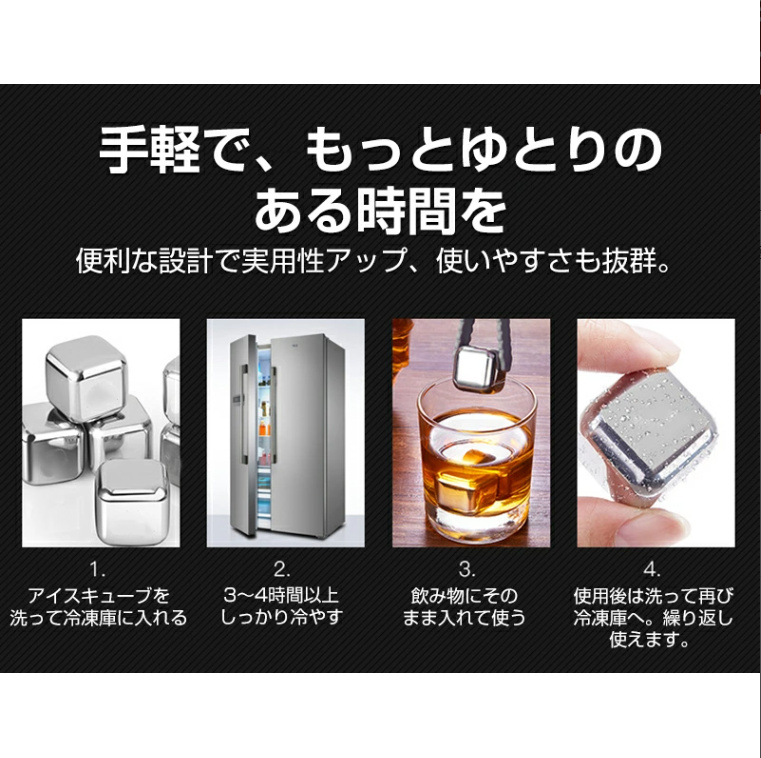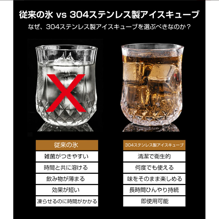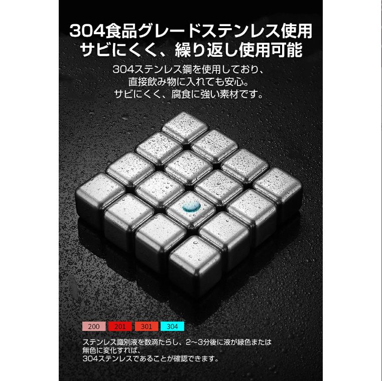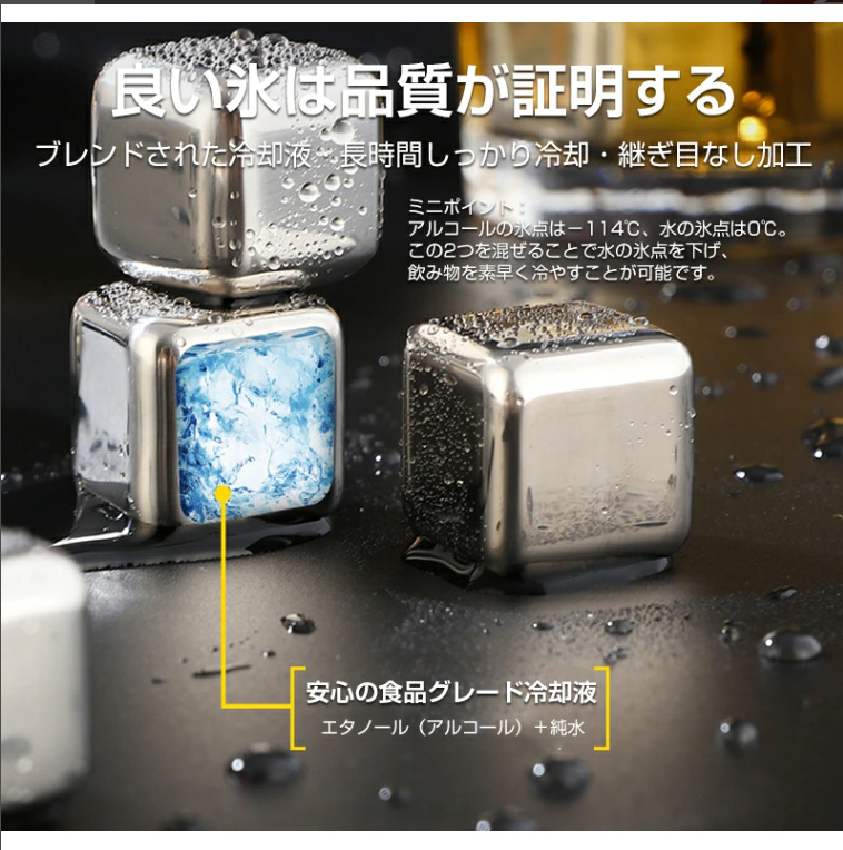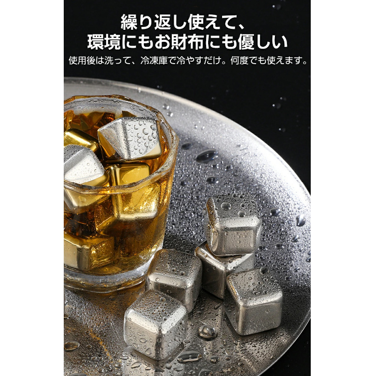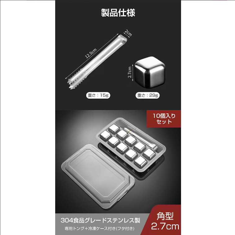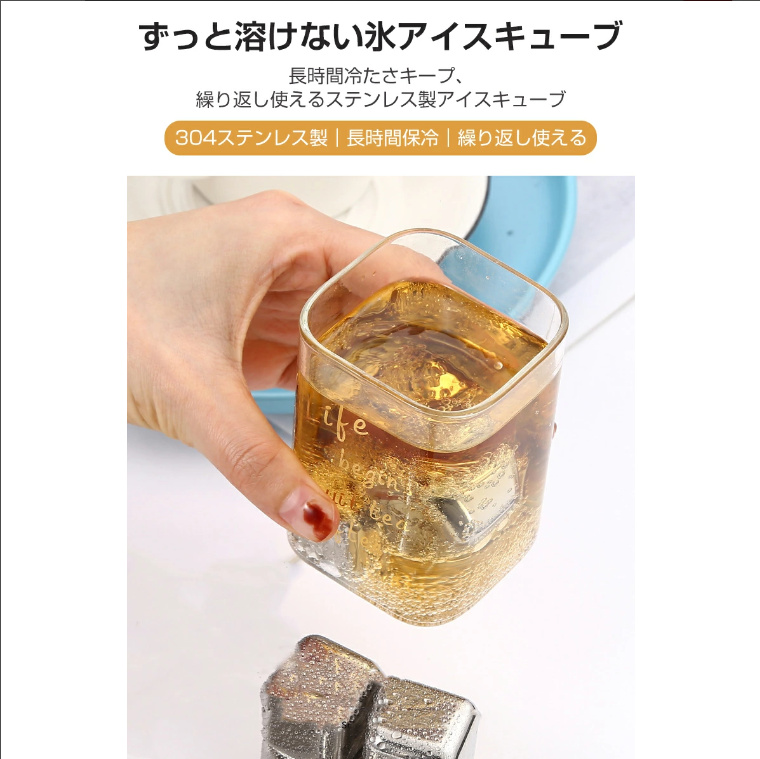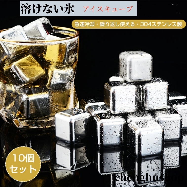 商品名:溶けない氷 304ステンレス製 冷たい アイスキューブ 10個入 製氷機 ひんやり 涼しい クール 猛暑対策 金属 永久氷 冷凍庫 くり返し 使用 角氷 ステンレス氷 飲み物 氷の代用品