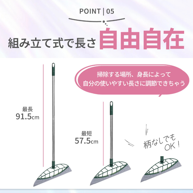 【長さ】最長91cm〜最短57.5cm(柄をつけずに水切りワイパーのように使うことも可能)