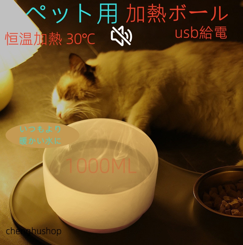 ペット用ボウル 加熱 ペット用加熱ボール 一体型 猫用加熱ボウル 犬 ペット給水器 加熱給水器 1000ML 大容量 陶器 フードボウル 食器 usb給電 恒温加熱 30℃