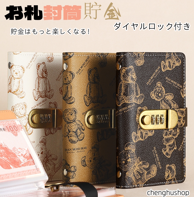 お札 貯金箱 お札封筒貯金 くま柄 ダイヤルロック付き 100枚収納可能 お札 貯金箱 貯金ファイル バインダー おしゃれ 封筒貯金 現金詰めバインダー 折らない