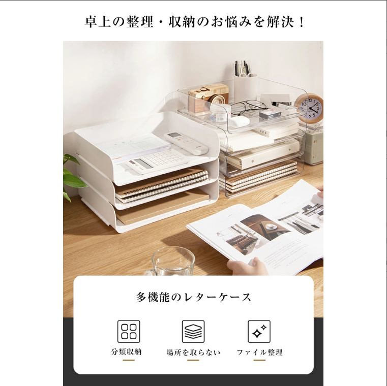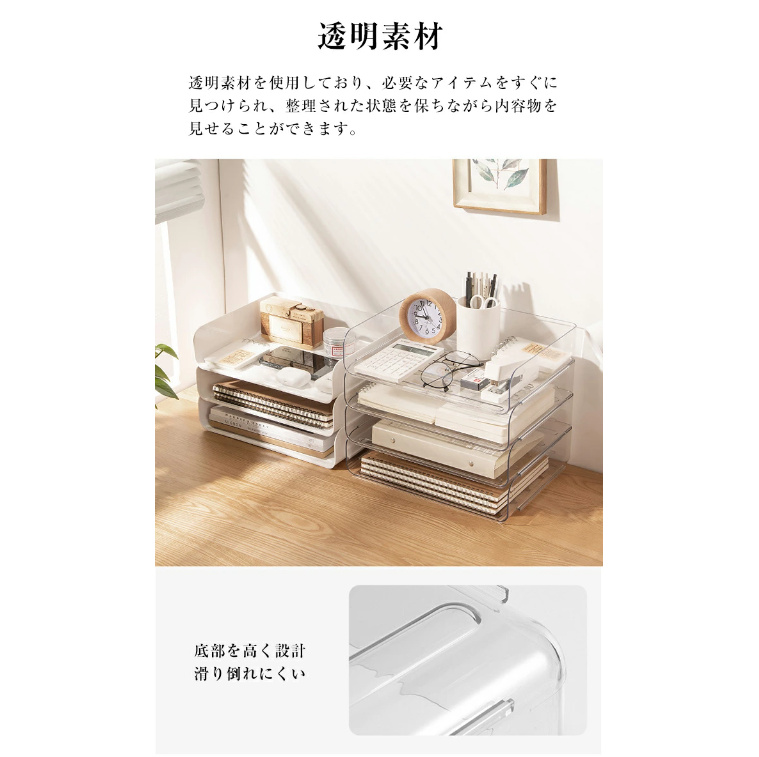 レターケース A4 透明 卓上 小物入れ クリア 書類 収納ケース トレー ファイル整理 デスク上収納 卓上引き出し デスク 引き出し おしゃれ 事務用品 積み重ね